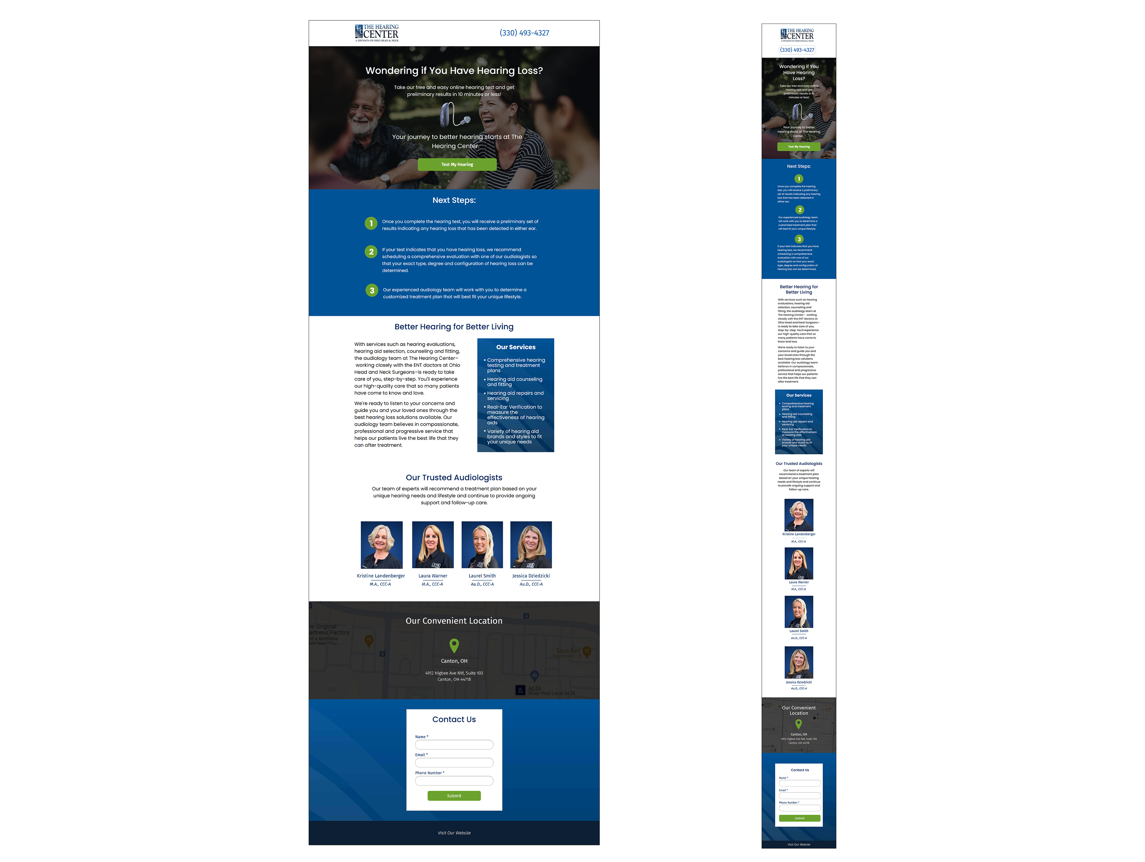 Every so often in my current role, I get the pleasure of stretching my design muscles and creating landing pages for our members. We are consistently creating landing pages for ENT and Audiology practices, this one just so happens to focus on hearing loss.